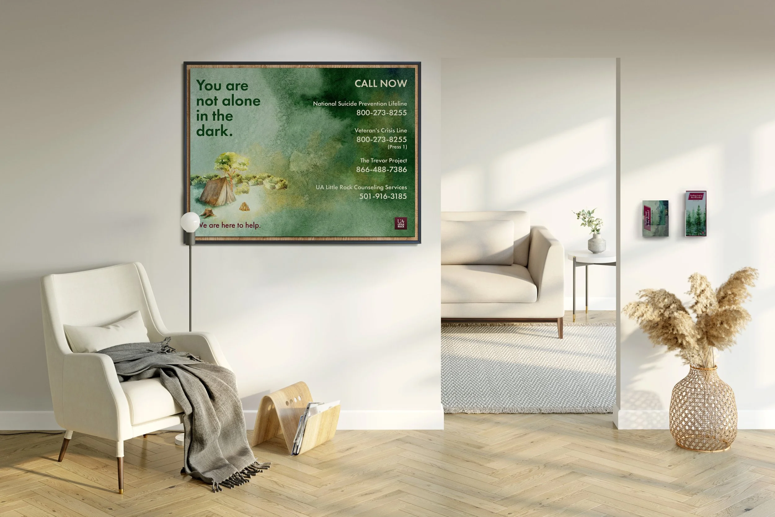 Verbal Eyes gathered input of individuals who have experienced thoughts of suicide or who have lost someone to suicide to design sensitive communication tools, such as posters and brochures for college campuses and mental health offices.